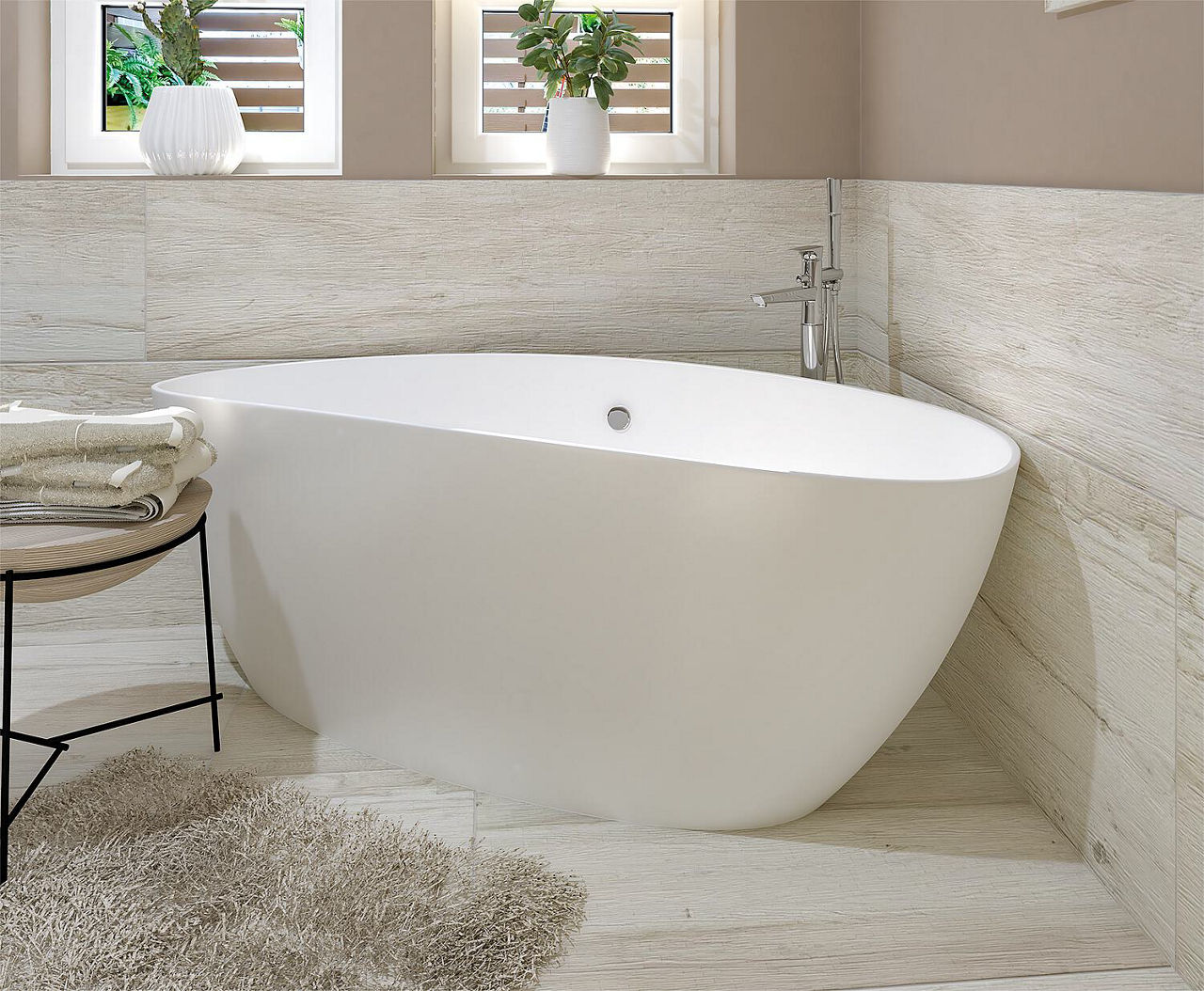 Produktinformationen "Badewanne EBBA BxHxT: 1700x620x770 mm Überlauf links Inhalt: 250 l Mineralguss weiß"