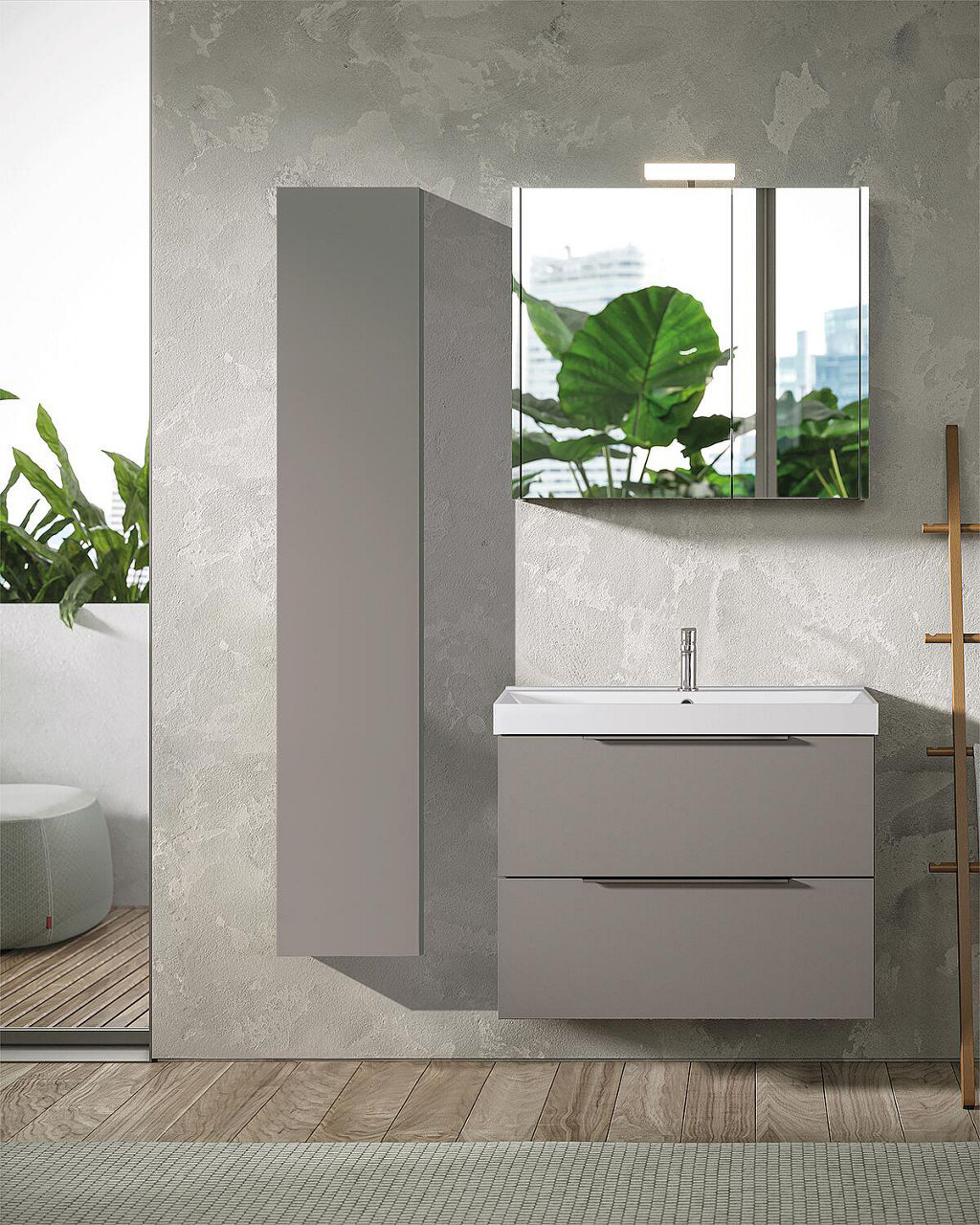 Badmöbel-Set BALI 2.0 Keramik WT, London Grau lackiert 2 Auszüge Breite 810 mm