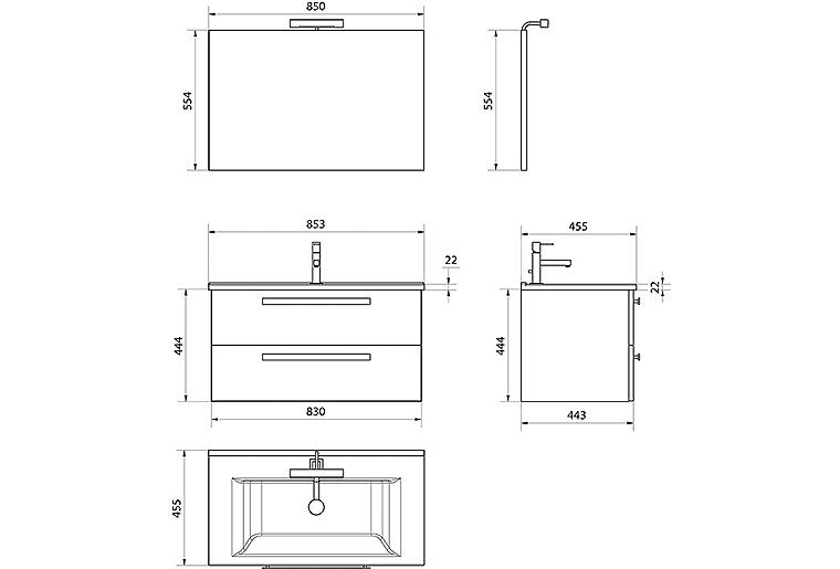 Marke: evenesMontageart: wandhängendAnzahl Waschplätze: 1Oberflächenbehandlung: foliertVPE: €/StückFarbe: anthrazit mattFarbe des Korpus: anthrazitHöhe [mm]: 466Breite Waschtisch [mm]: 853Breite [mm]: 853Farbe der Front: anthrazitMit Beleuchtung: trueGlanzgrad: mattMaterial Korpus: HolzspanplatteTiefe [mm]: 455