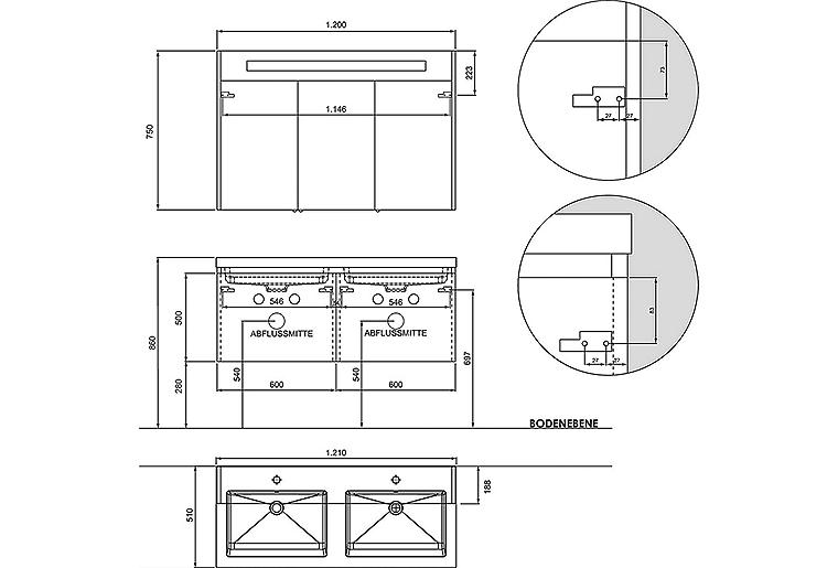 Marke: evenesMontageart: wandhängendAnzahl Waschplätze: 2Oberflächenbehandlung: DekorVPE: €/StückFarbe: eiche naturFarbe des Korpus: Eiche naturHöhe [mm]: 580Breite Waschtisch [mm]: 1210Breite [mm]: 1210Farbe der Front: Eiche naturMit Beleuchtung: trueGlanzgrad: SeidenmattMaterial Korpus: HolzspanplatteTiefe [mm]: 510
