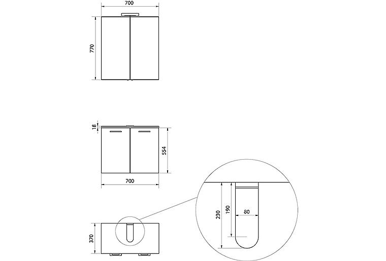 - Maße (B x H x T): 700 x 770 x 208 mm