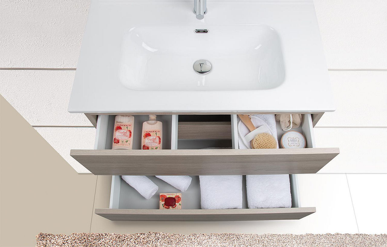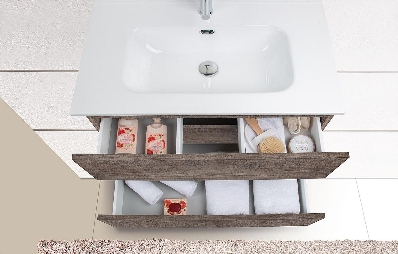 Badmöbel-Set Kora 2 Auszüge Weiss Esche Breite 805 mm