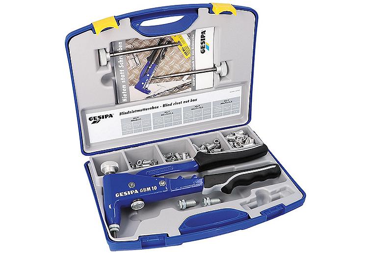 Produktinformationen "Blindnietmutterset GESIPA inkl. Blindnietmutterzange GBM und Blindnietmuttern M4/5/6, 193-teilig"