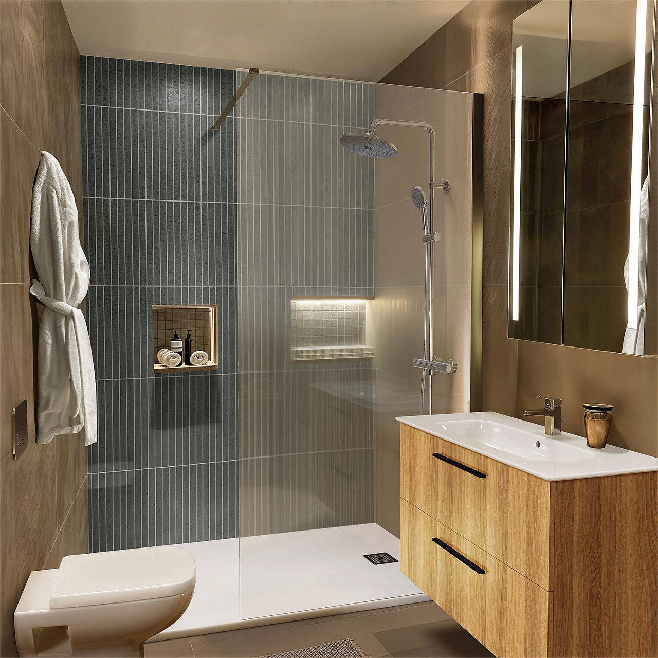 Produktinformationen "Brause-System Ideal Standard Ceratherm T25+ Handbrause, Kopfbrause Ø 260mm und Thermostat chrom"