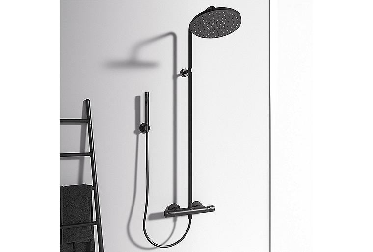 Produktinformationen "Brause-System Ideal Standard Ceratherm T25 Stabhandbrause, Kopfbrause Ø 200 mm und Thermostat schwarz matt"
