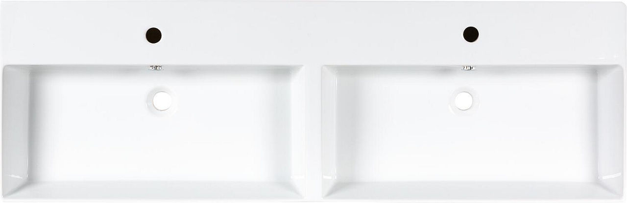 Produktinformationen "Doppelwaschtisch Elayla 1410x130x460 mm 2 Hahnlöcher und 2 Überläufe Keramik weiß"