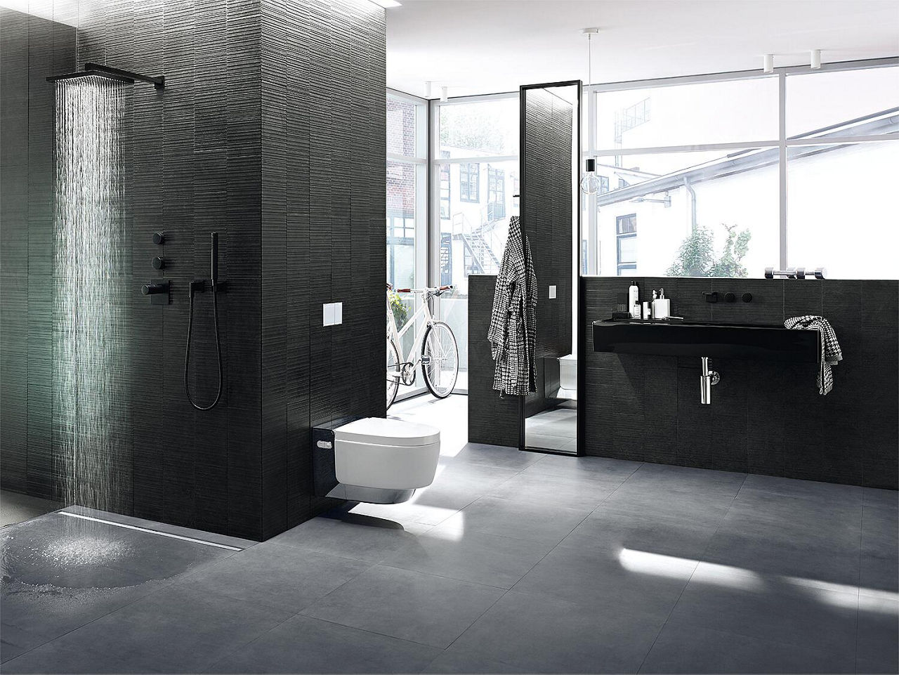 - Duschrinne in Höhe, Neigung und Versatz ausrichtbar