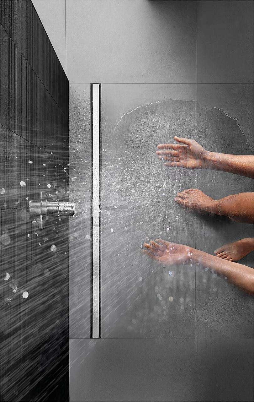 - Duschrinne in Höhe, Neigung und Versatz ausrichtbar