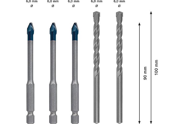 Gesamtzahl der Werkzeuge: 5Geeignet für Porzellan: falseGeeignet für Fliesen: trueMarke: BoschSchaftdurchmesser: 6,3 mm (1/4 Zoll)Geeignet für Beton: trueHerstellerartikelnummer: 2608900596VPE: €/StückGeeignet für Keramik: trueLänge [mm]: 90;100Geeignet für Dachziegel: trueAusführung Schaft: SechskantGeeignet für Mauerwerk: trueGeeignet für Glas: falseGeeignet für Stein: falseVerpackung: KunststoffkassetteEAN: 6949509232489