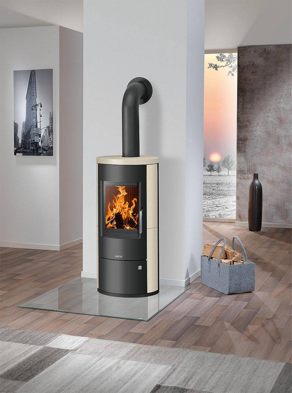 Produktinformationen "Kaminofen Justus Austin 5, Kalkstein Cream, Korpus Stahl schwarz"