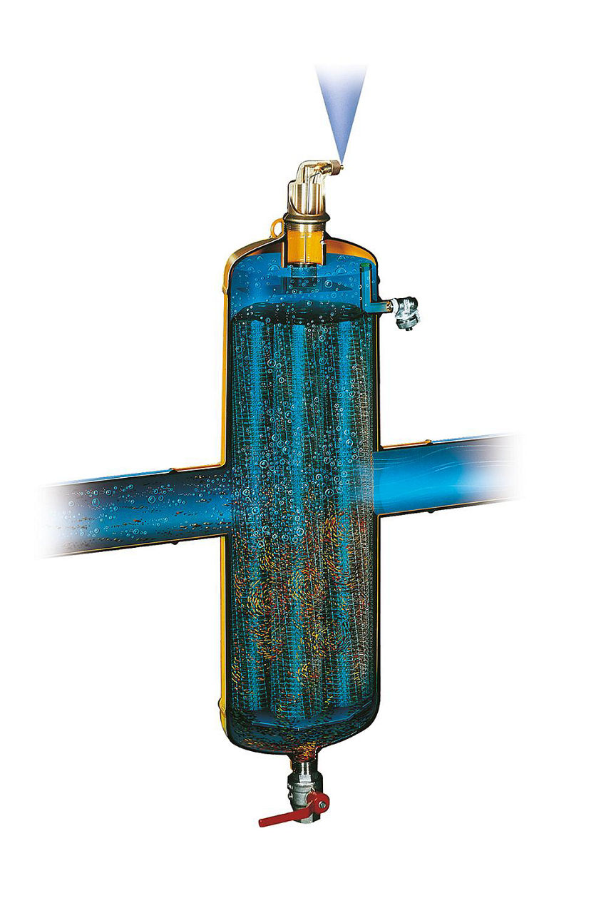- Strömungsberuhigung in der Abscheidekammer durch spezielles Spirorohr ermöglicht kontinuierliche Entfernung von Luft-, Mikroluftblasen sowie magnetischen und nicht magnetischen Schmutz- und Schlammpartikeln bei sehr geringem Druckverlust