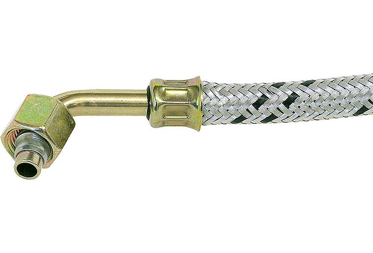 Ölbrennerschlauch 3/8" ÜWM x Rohrbogen SR 8 LR m. Kegel, Überwurfmutter 1200 lg.