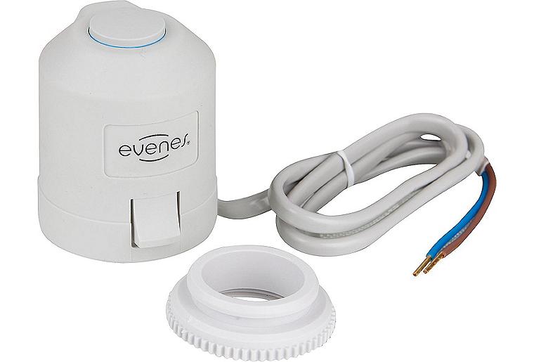 - 6x Stellantrieb evenes elektrothermisch, 230 V, stromlos geschlossen, inkl. Adapter VA80 M30 x 1,5 (passend auf Ventilart Heimeier)