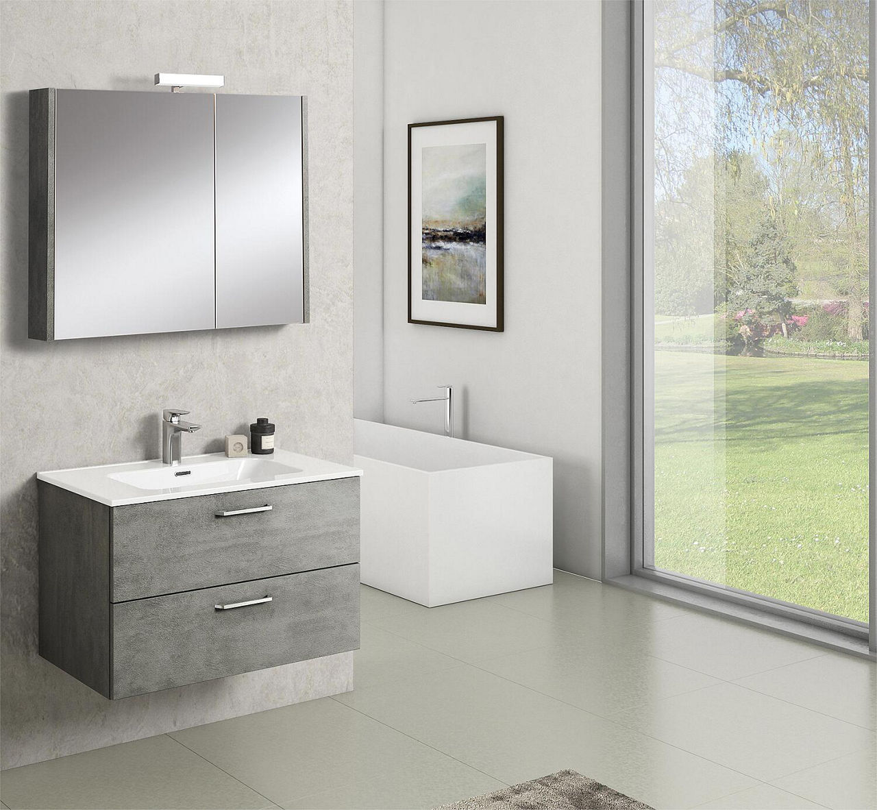 Spiegelschrank Akira mit LED-Beleuchtung, 2 Türen, Chateau Eiche, 800x700x155mm