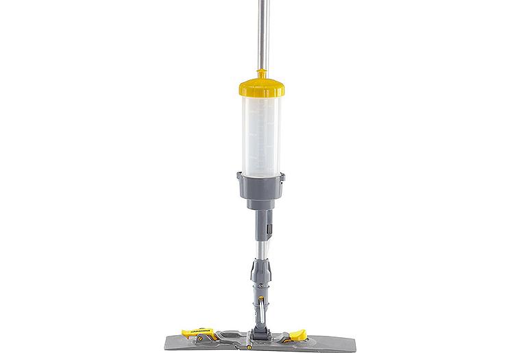 - Die Reinigungslösung wird direkt vor den Mopp gesprüht
