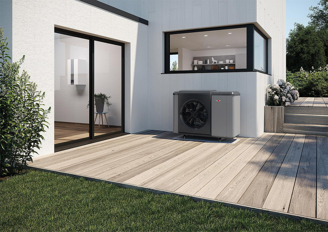 - Betrieb mit natürlichem Kältemittel R290 für mehr Effizienz und hohe Vorlauftemperaturen bis 70°C (reiner Wärmepumpenbetrieb)