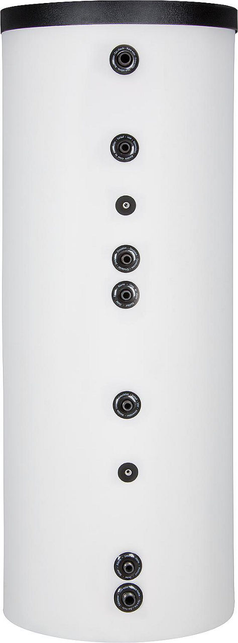 - Ein Hochleistungs-Wärmetauscher oben, doppelt gewickelt für Wärmepumpe