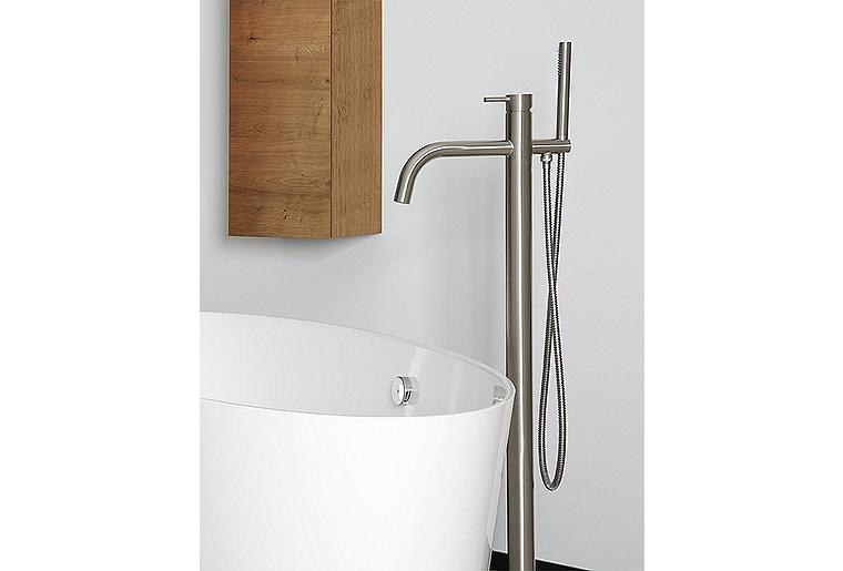 Wannenmischer-Set Inox Round bodenstehend mit Stabhandbrause + Grundkörper Ausladung 246 mm Edelstahl matt