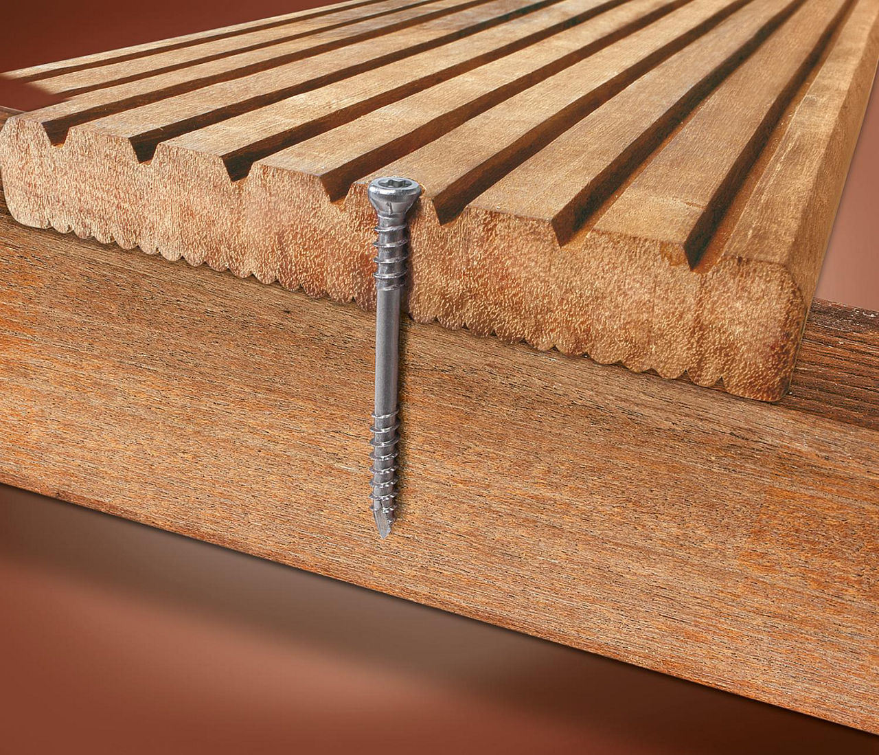 - Fixiergewinde: Fester Sitz des Holzbelags auf der Unterkonstruktion, garantiert sichere und dauerhafte Verbindung zweier Hölzer ohne Knarzen