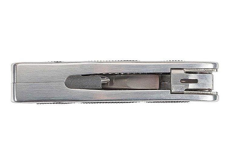 - Anzahl Werkzeuge: 8 1. Zange mit Drahtschneider 2. Messer 420HC 3. Säge 4. Schraubendreher Kreutzschlitz 5. Flaschenöffner 6. Feile 7. Bitadapter 8. Nagelreiniger